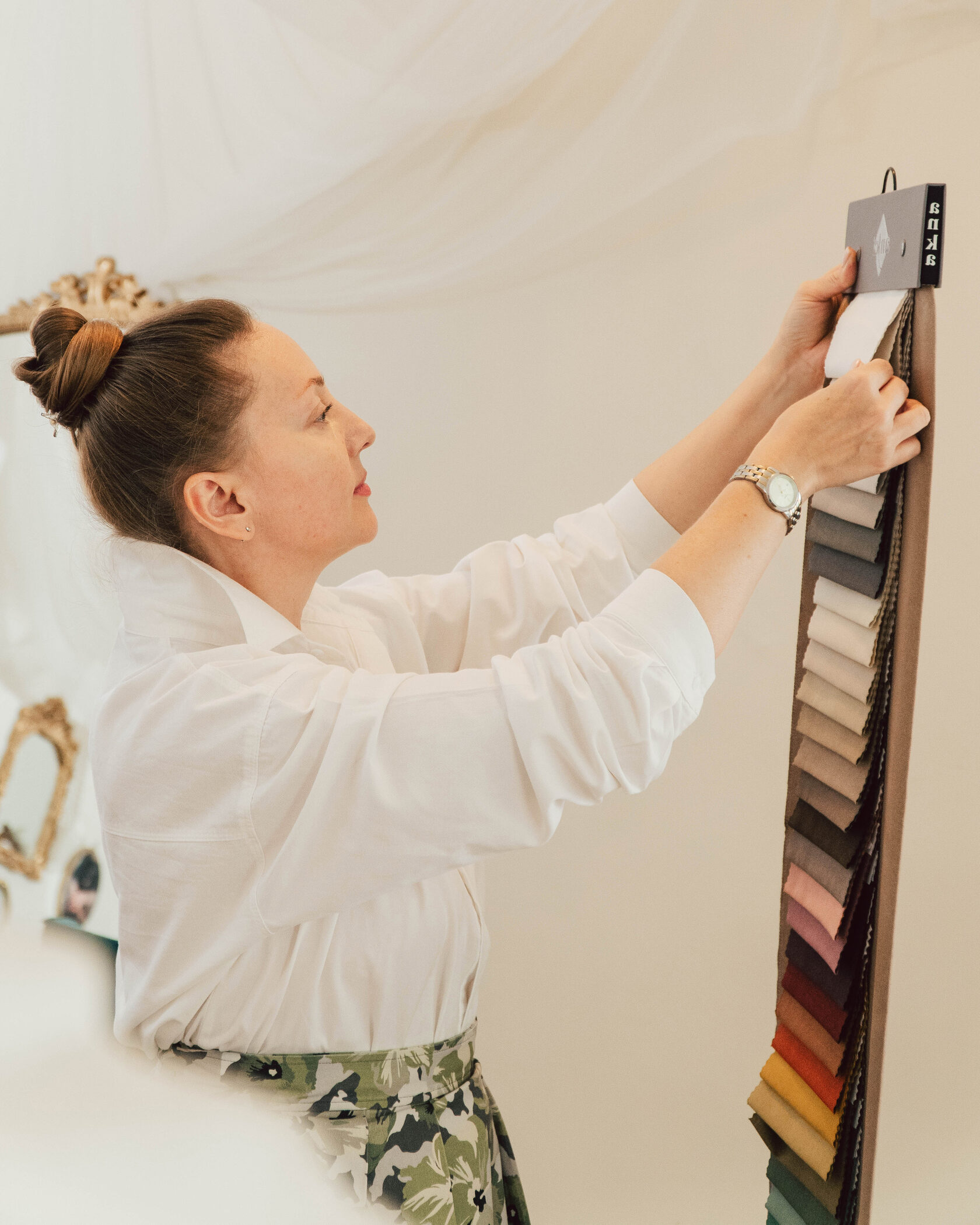 Индивидуально по вашему запросу я подбираю ткани, фурнитуру, учитываю особенности интерьера, его площадь, освещение, пропорции форм и насыщенности цвета.